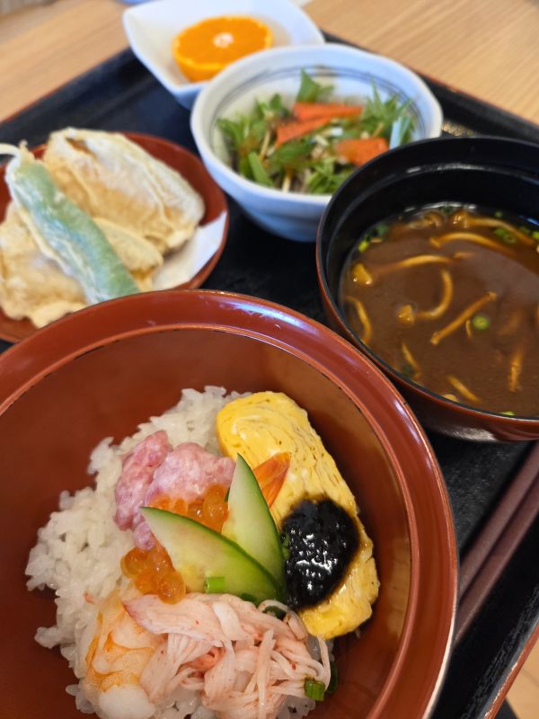 海鮮丼 天ぷら 赤だし 果物